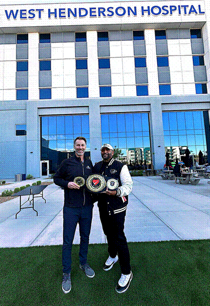 West Henderson Hospital CEO Chris Loftus with Vegas for Athletes Co-Founder Troy Roques